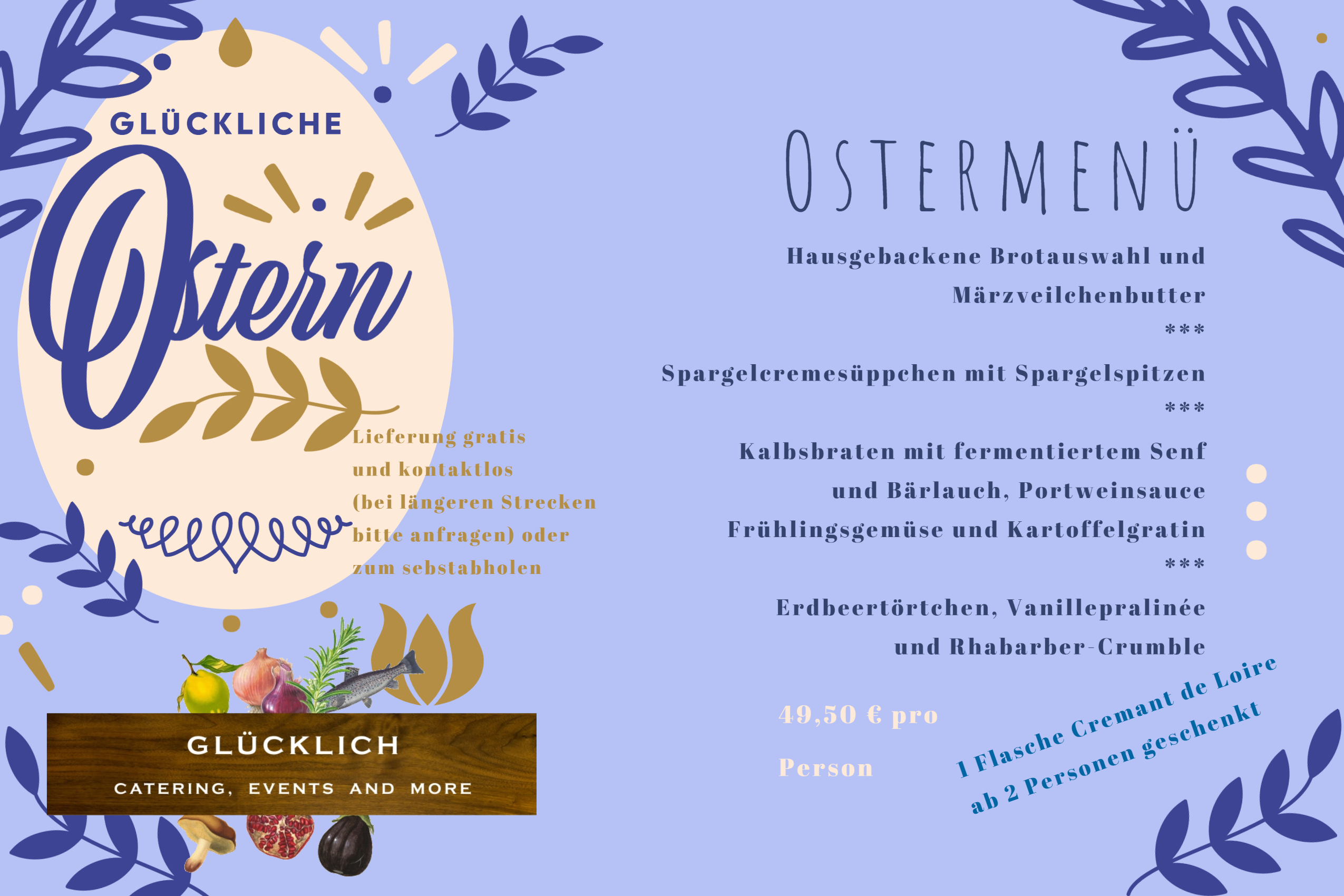 Unser fantastisches Ostermenü lässt Sie die Krise schnell vergessen. Genießen Sie ein traumhaftes 3-Gänge Menü mit ihren Liebsten. Wir liefern frei Haus in Worms und Umgebung! Flyer